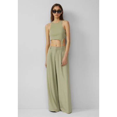 SMART WIDE-LEG WITH BUCKLE DETAIL - Trousers - mottled light brown
